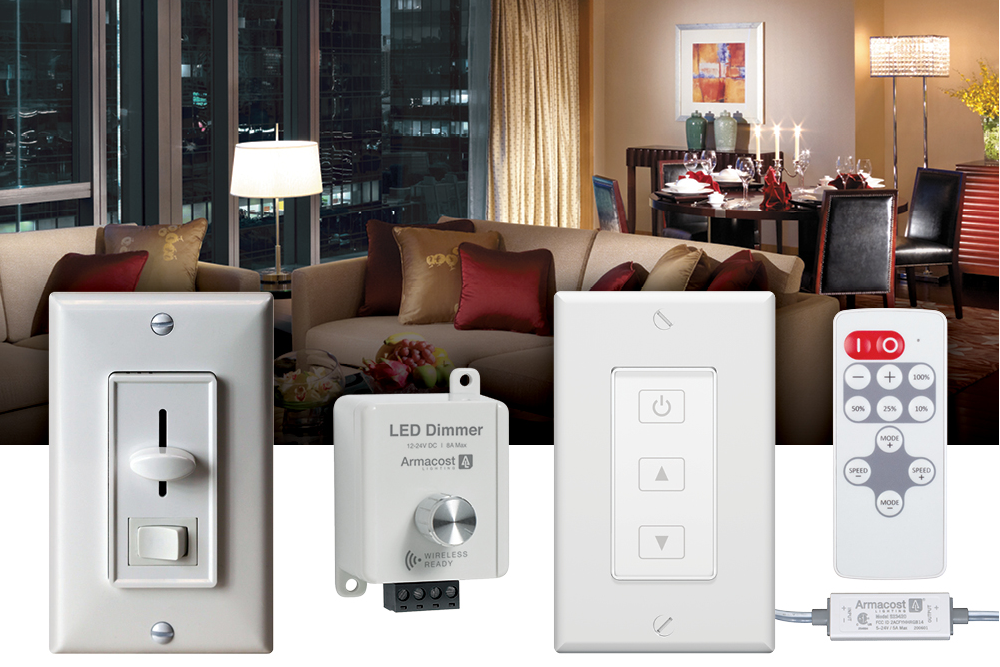Yes, a dimmer switch (i.e. Lutron or Leviton) can be used with low voltage LED strip lights, but an AC dimmable power supply must be utilized. A special dimmer switch is not required for LED tape lights; most modern dimmers are compatible with Armacost Lighting AC Dimmable Power Supplies. Dimmable products will operate under the full dimming range adjustment 0% – 100%. Do not use an AC dimmer with standard electronic power supplies; they are not compatible. If you are unsure what type you have, go here. To learn more about dimming white LED lighting and what may be your best installation option based on your application and power supply, please visit LED Dimming Basics.