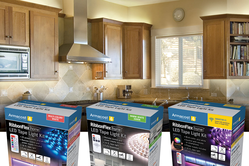 LED strip light brightness is dependent upon density of the LEDs on the strip. Armacost Lighting RibbonFlex 120 LEDs/m is the brightest LED tape light product we offer, delivering a super bright output designed for task lighting. 60 LEDs/m is bright enough for a broad range of undercabinet and accent lighting. 30 LEDs/m is less bright and best for accent lighting applications. All Armacost Lighting RibbonFlex LED light strips are fully dimmable from 100% – 0%.